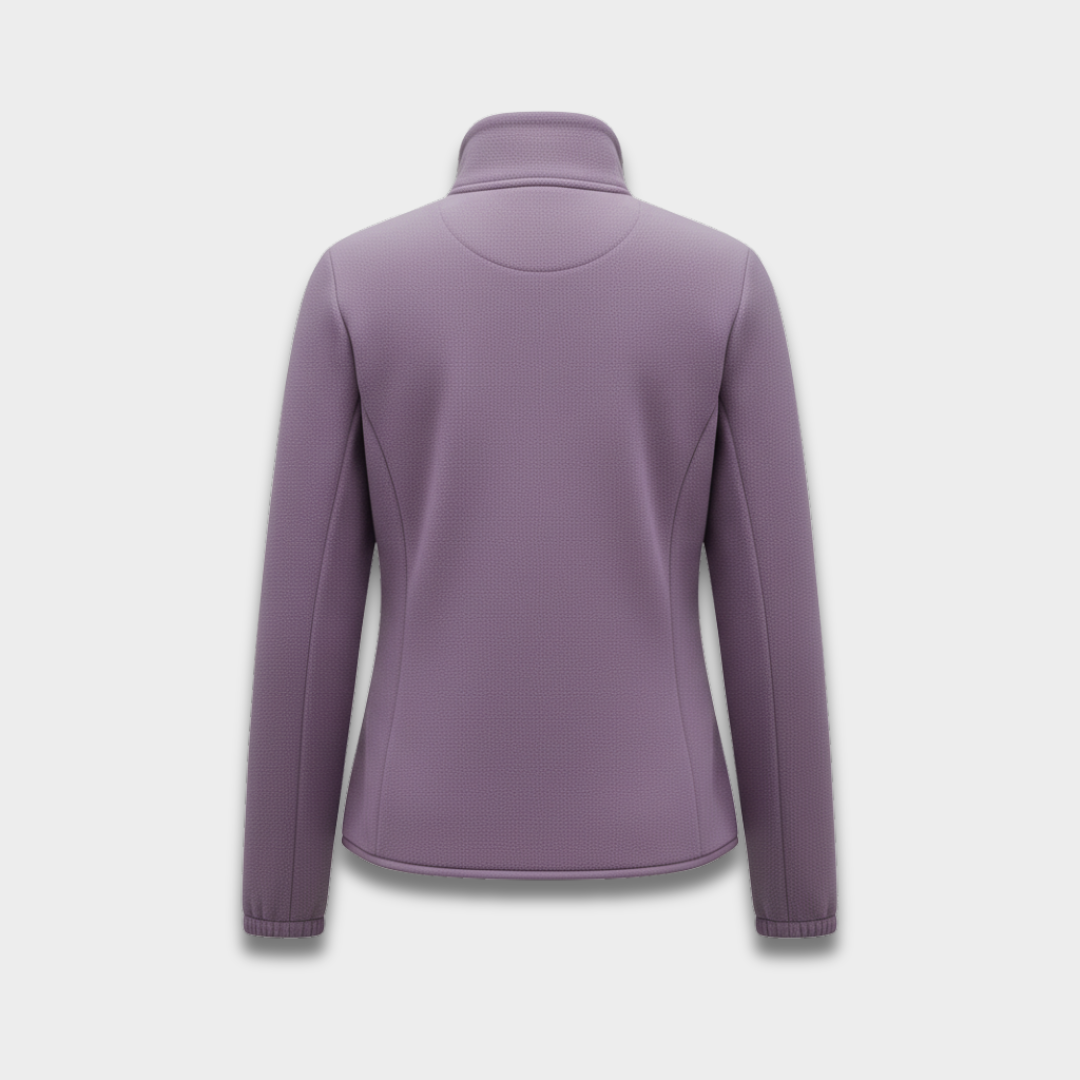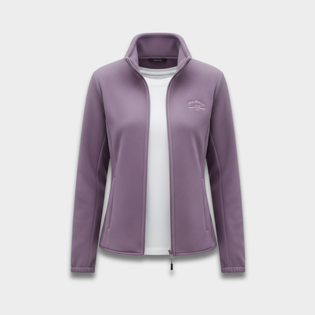 This women's jacket features a front zipper and a high collar for added comfort. A straight hem and long sleeves create a simple, balanced look suitable for everyday wear.