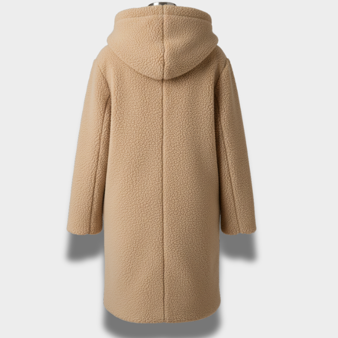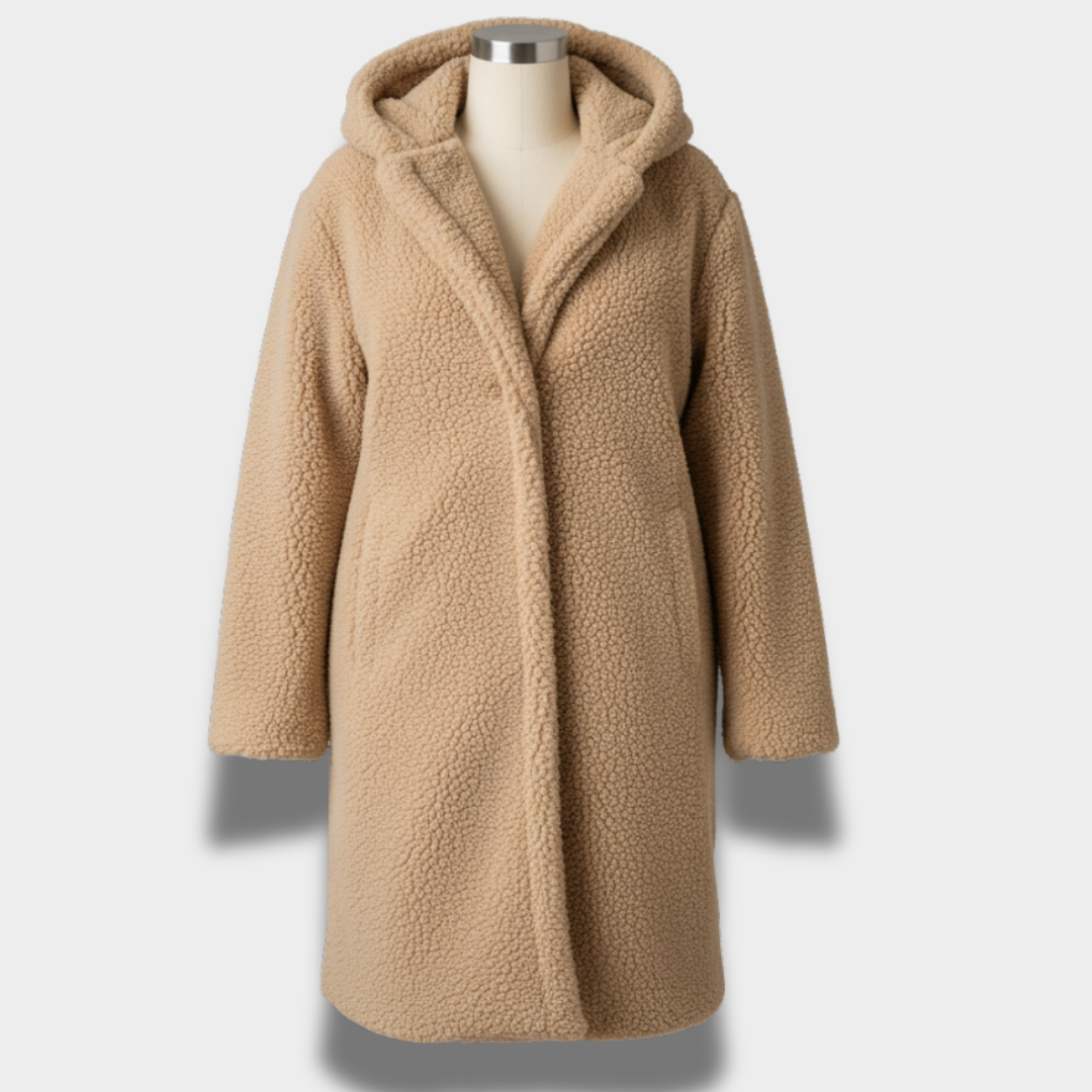 Damski długi płaszcz z teksturą i kapturem
