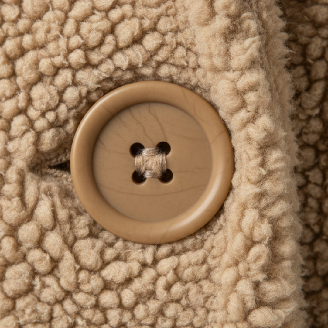 Płaszcz ma kaptur, długie rękawy i przednie otwory ułatwiające codzienne użytkowanie. Jego nieskomplikowana forma pasuje do codziennych sytuacji bez sugerowania właściwości stylowych lub użytkowych.
