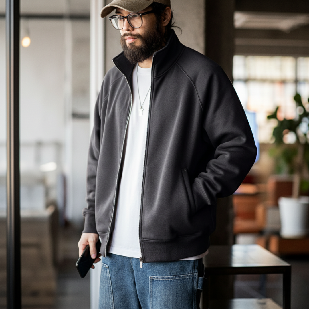 Męska kurtka na zamek o swobodnym kroju i prostym fasonie. Zamek błyskawiczny z przodu oraz dwie boczne kieszenie zapewniają wygodę. Klasyczny wygląd sprawia, że kurtka pasuje do codziennych stylizacji.