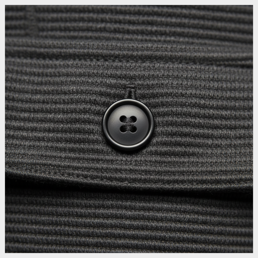 Kurtka posiada wieloguzikowe zapięcie, dwie kieszenie oraz prosty wygląd zewnętrzny. Konstrukcja utrzymuje spójny wygląd podczas codziennego użytkowania i pasuje do wielu zwykłych elementów garderoby.