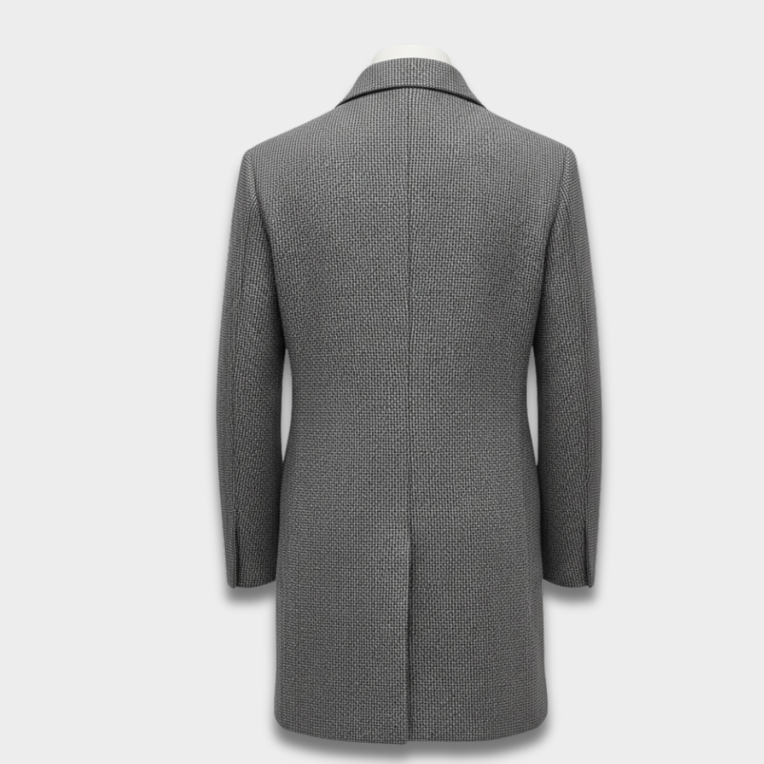 Męski casualowy długi płaszcz zapinany na guziki o uporządkowanym kroju
