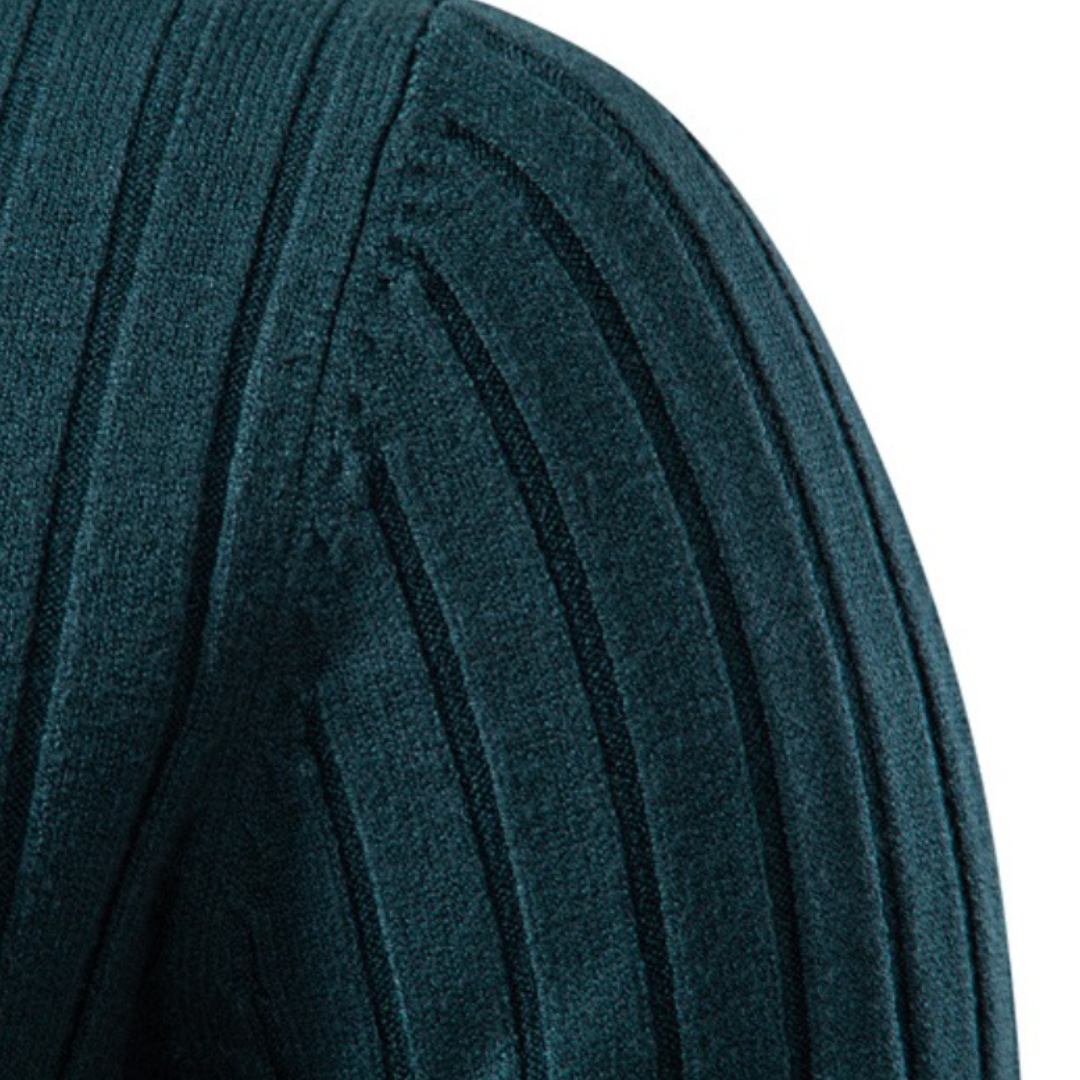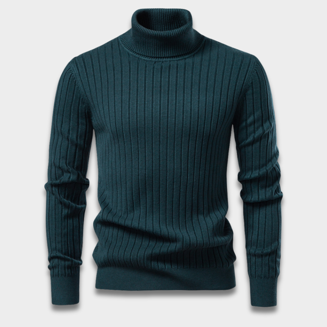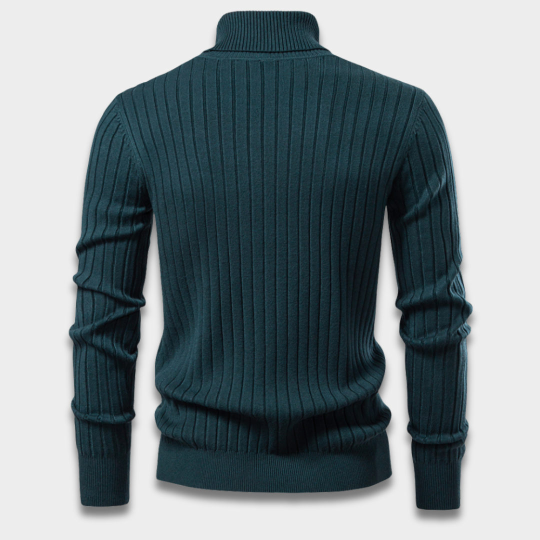 Męski prążkowany sweter z golfem z długim rękawem i dopasowanym krojem
