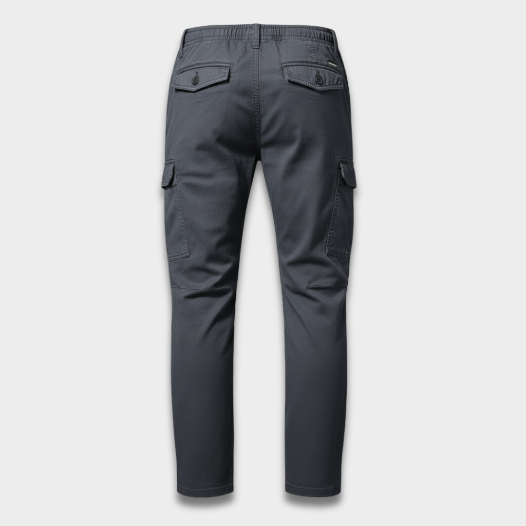 Męskie spodnie cargo o prostym kroju zaprojektowane z myślą o codziennym komforcie i funkcjonalności. Posiadają klasyczne kieszenie boczne oraz dodatkowe kieszenie na nogawkach, które zwiększają praktyczność użytkowania. Elastyczny pas i szlufki umożliwiają dopasowanie do różnych sylwetek.