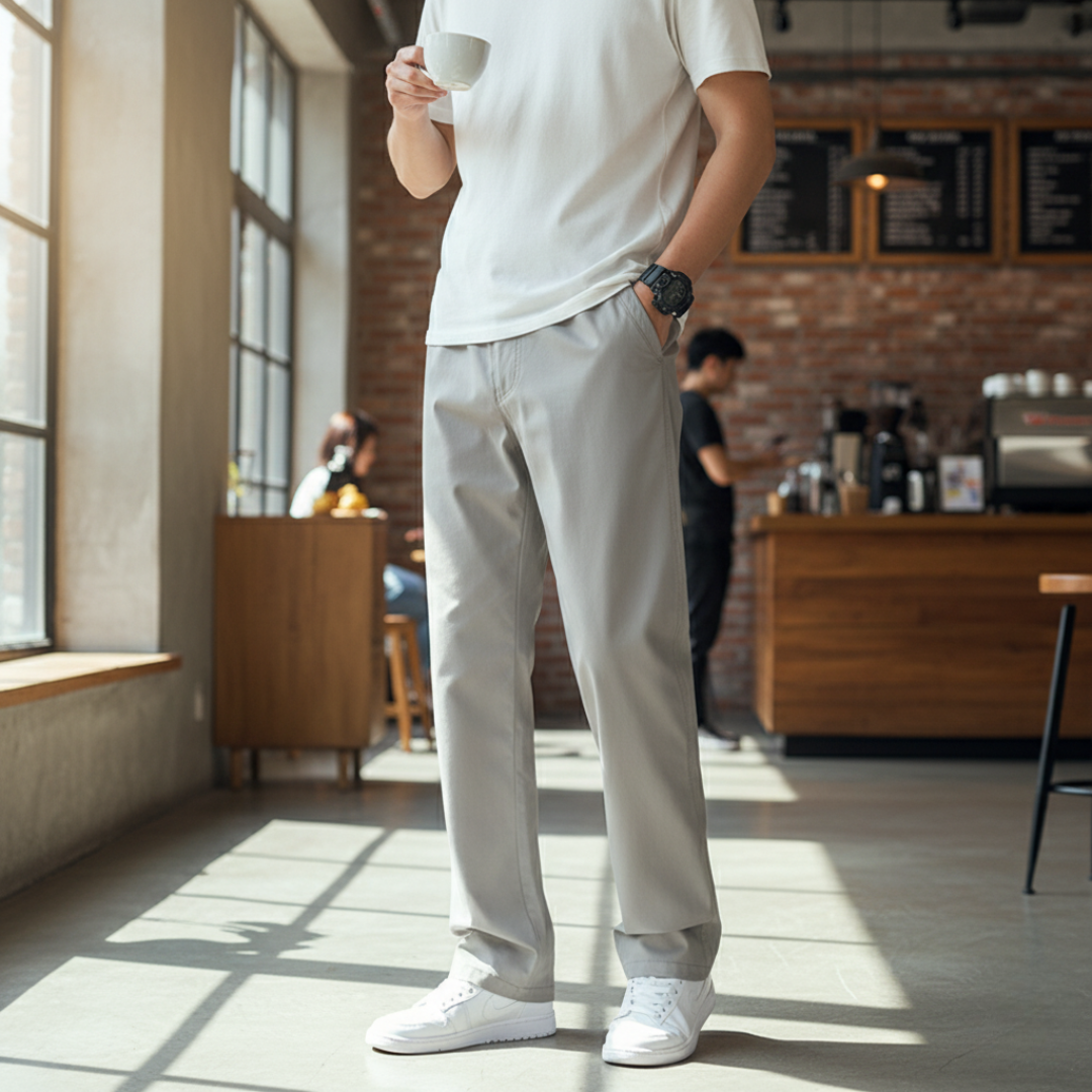 Model został zaprojektowany z myślą o komforcie i swobodzie ruchów. Spodnie dobrze komponują się z koszulką lub bluzą, tworząc casualowy, schludny wygląd odpowiedni na różne okazje.